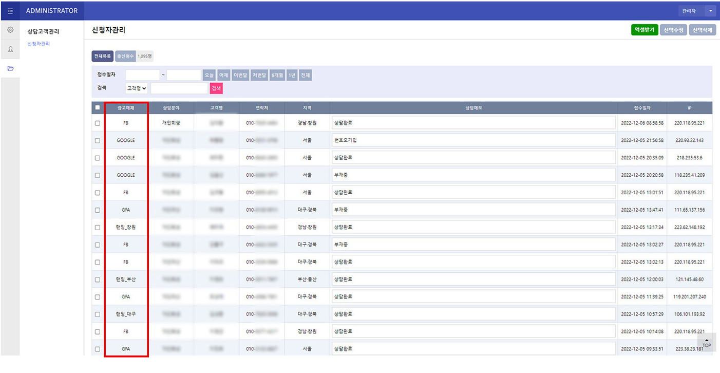 엑셀 다운로드기능이 있어 편리하게 데이터추출이 가능합니다